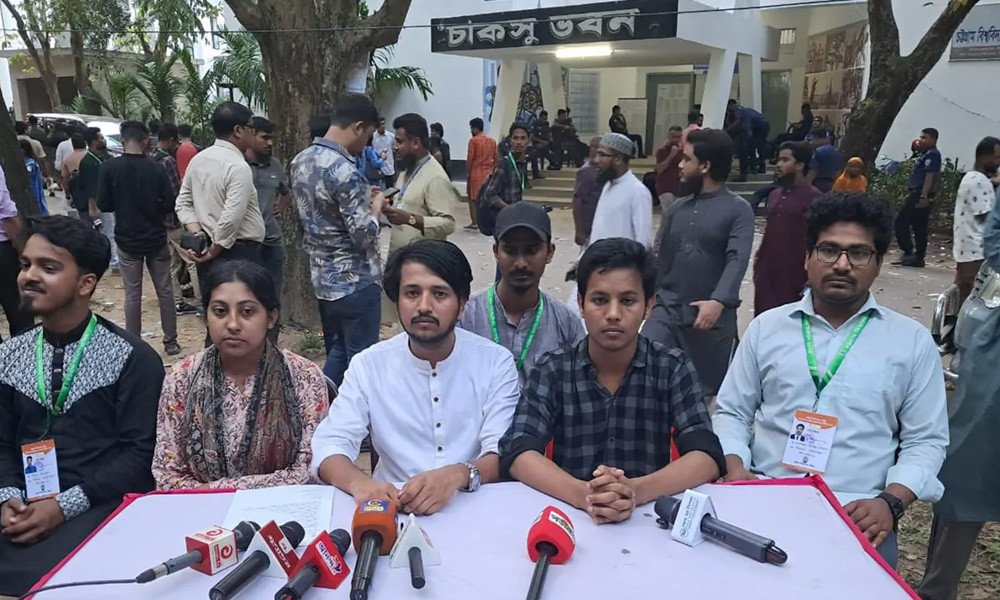 জাল ভোট, সইবিহীন ব্যালট পেপার প্রদানসহ ১০টি কারণ দেখিয়ে ভোট বর্জনের ঘোষণা দিয়েছে ‘বিশ্ব ইনসানিয়াত বিপ্লব স্টুডেন্ট ফ্রন্ট’ সমর্থিত ‘রেভ্যুলুশন ফর স্টেট অব হিউম্যানিটি’ প্যানেল।